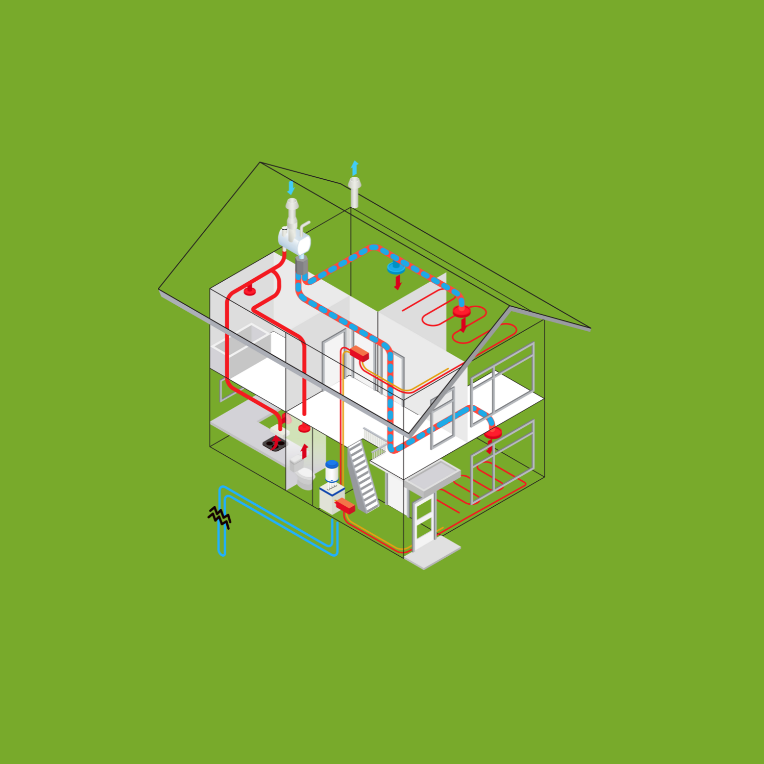 A Mechanical Ventilation with Heat Recovery (MVHR) system improves indoor air quality while reducing energy costs.